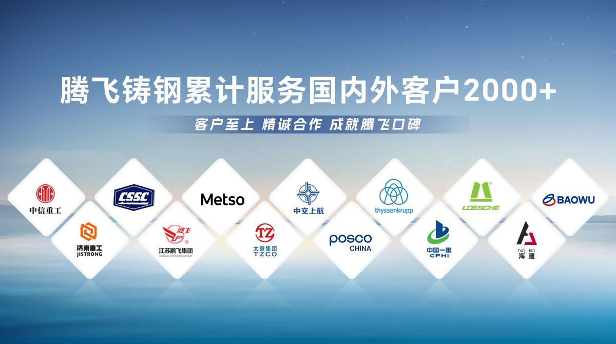 騰飛鑄鋼成立于2006年,位于全國鑄造基地河南省新鄉市,擁有員工300余人,是一家從事150噸以下碳鋼、低合金鋼、不銹鋼鑄鋼件研發、制造、服務為一體的國家高新技術企業?! 」就ㄟ^了ISO9001國際質量管理體系認證,擁有2項發明專 利,2項河南省科技成果、25項實用新型技術,通過了“環??冃гu級B級企業”驗收,先后榮獲“河南省鑄造行業綠色發展企業”、 “河南省科技型中小企業”、“河南省專精特新中小企業”等榮譽稱號。  公司擁有2臺25噸電爐,4臺大型天燃氣熱處理爐、10米回旋自動拋丸機一臺, φ8m數控立車、φ10m數控滾齒機等各類高精裝備100余臺套,年產能3萬余噸,能為客戶提供從產品設計、木模加工、大型鑄造、大型加工一站式服務,產品廣泛應用于建材、冶金、鍛壓、冶金、水工、路橋、化工等多個重型行業?! ¢L期服務于中信重工、中船重工、美卓、上海中交、萊歇、寶武、濟南重工等全球知名企業,在行業內擁有較高的市場知名度和美譽度。